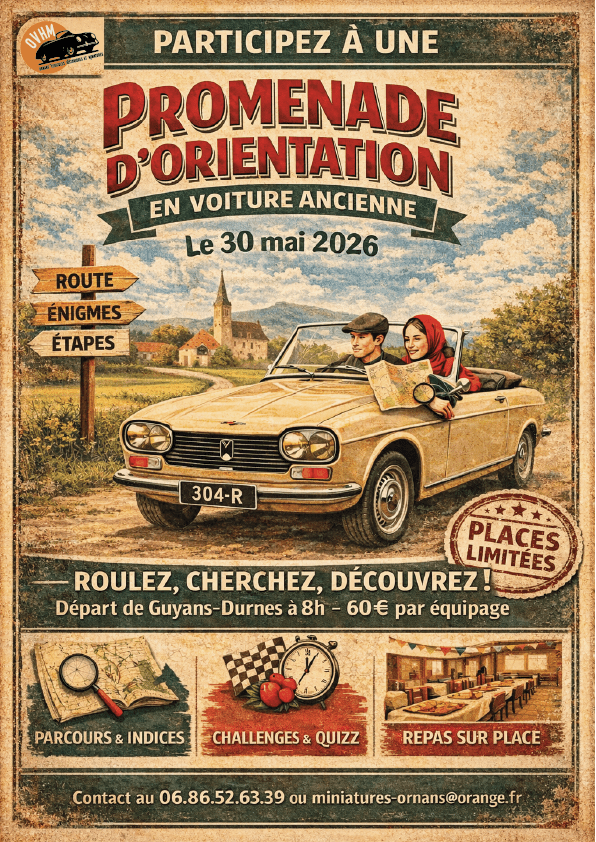 Le 30 mai 2026, embarquez pour une aventure unique au volant de votre voiture ancienne lors d’une promenade d’orientation conviviale et pleine de surprises !